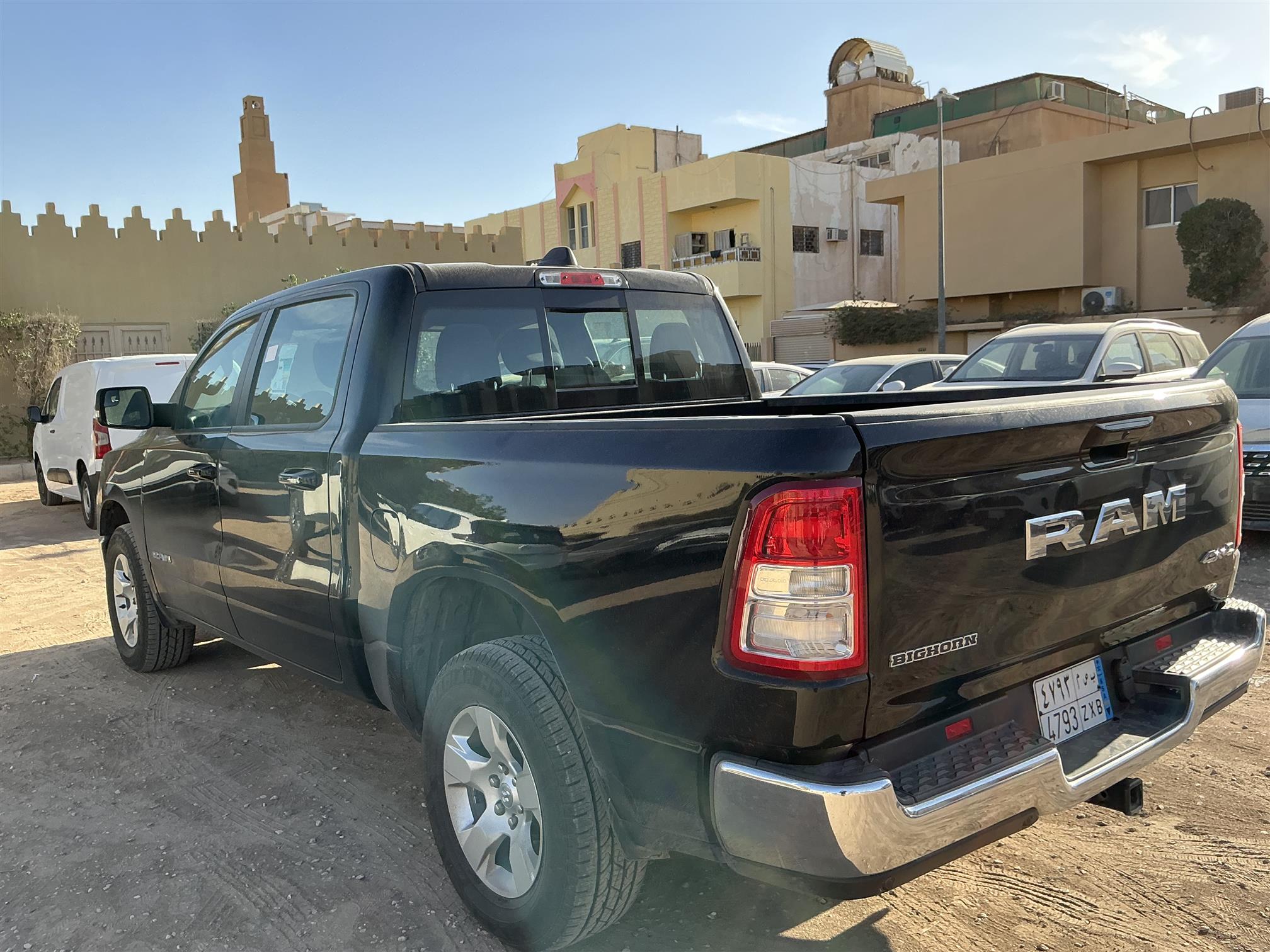 ب ص م 4793 | دوج رام 1500غمارتين بج هورن طاقم كب 3.6L - اتوماتيك 4X4 ثقب صغيرفي السقف | الممشى : 84595كلم | اللون : اسود | المحرك : Auto | سنة الصنع : 2022